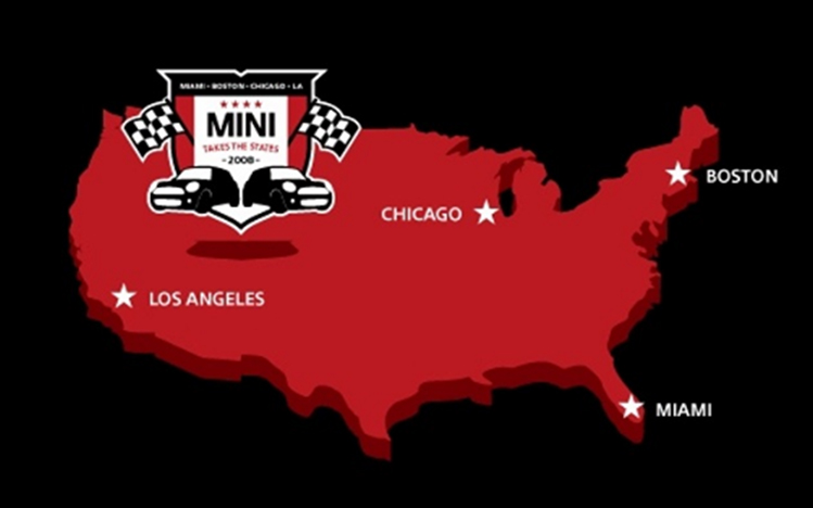 MINI Takes the States 2008 was the second MTTS, cementing the rally as a biennial adventure celebrating the MINI owner community. A series of four weekend events in Miami, Boston, Chicago, and Los Angeles hosted 5,000 MINIacs and invited owners and non-owners alike to take a spin on an autocross track.